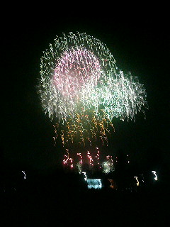 日本の皆さん、花火は好きですかー? 首都圏の皆さん、花火は見ましたかー? というワケでクリスは某花火大会に行って参りました♪ もう、花火!花火!花火!(゚∀゚)↑↑ どっぴーかんな真夏の太陽も好きだけど、涼しい風流も夏の風物詩ですねー。 綺麗だわー(´▽`*) 友達と一緒にうっとりです。 バカップルが多いのは少し萎え物だけどね。 でも友達と来るのと恋人と来るの、どっちが楽しいのかしら。 私は個人的に、どーんって響いた後の空気の震えが好きだったりします。 クリスの写メ、一発目~☆ 花火は何も一色とは限らない! 一発でこれだけ繚乱とできる磨ぎ澄まされた花火に天晴。 二発目~☆ 連打!連打!連打!↑↑ 圧倒されますゎ、色とりどりにドカドカ上がってきれーです♪ 三発目~☆ クリスが撮った最高のモノです。 下からぐわーって吹き上がって、斜めの網みたいに単発が飛んで、 そいでどかんどかんどかん、トドメに特大どーん! 不覚にも見惚れました//// 芸術を感じます……。 (*ノノ).oO(好きな人とこんなの見れたらコロっと行っちゃうかも) ラスト~☆ 花火の垂れって物寂しさがありますねー。 こうやって一面に広がられると、切なさを感じます(´д`) 今年の花火もこれで終わり。来年もまた来ようって思わせる幕切れでした。 これで帰りのラッシュが無ければ最高なんだけど。 ちゃんちゃん♪ |