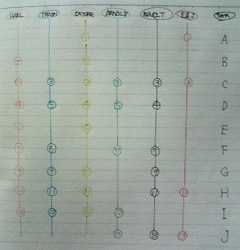 この休日中にあと二回ぐらい更新、勝負は春休みです。 大学の春休みは長いんで、一気に第二編を完結させます。 できれば第三編序盤を展開させて行く寸法。 目標は、今年中に第三編の完結。 軽いプロット的なものをここにメモしとこう。 なん君に、「私がスプスプのプロットを見せ、だー君に殴られた」という夢を見たため、正夢にすべくスプスプの二編プロットを作成しました。 曰く、色分けされたプロットだったらしいので、ペンで色分けです。 二編は時間経過と共に同時進行でキャラが目まぐるしく交錯するため、期間をA~Jまで区分し、シーンを番号付けして、必要な人物へ割り振っています。 それにより、息詰まる展開の中、一刻の休息も許されないキャラ達が何をしているかがわかるようになりました。 ちなみに番号付けされた内容、実は文書ファイルとして別にまとめてあります。 よってプロット(?)のみは公開して無問題。 え? こんなのプロットじゃない? ごめんなさい。 でも内容がわかる方が読者としては損ですよね? ね? じっくり番号を追うとどんな展開になるか軽く読めちゃうんで、あまり不深く見ない方が読者のためです。(^^;) |